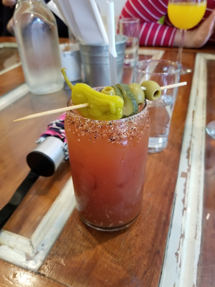 Came for brunch and started out with a red wine and Bloody Mary. My wife said Bloody Mary was done correctly. Also pictured is Italian grilled cheese. Spectacular! Our server was da bomb!!